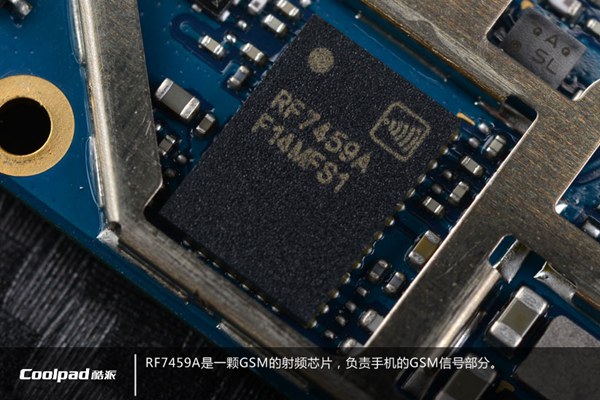 图为酷派双棒T1内置的RF74591 GSM射频新品,负责手机的GSM信号部分。