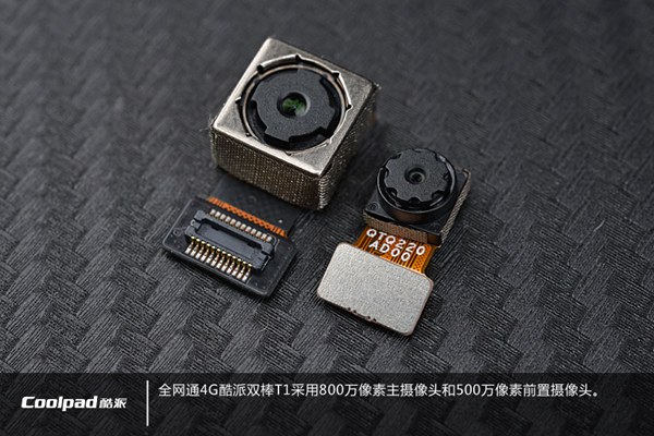 图为拆解下来的酷派双棒T1前后摄像头,其中前置500万/后置800万像素摄像头。