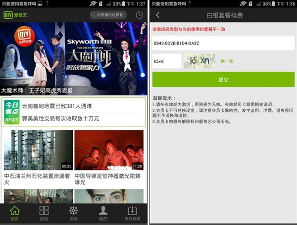 爱奇艺视频APP与应用商店下载的没有什么不同,当然吸引人的还是价值180元的半年VIP会员卡,需要注意的是,这是黄金会员卡,如果你目前是白银会员,那么暂时还无法激活;如果还不是会员、或者已经是黄金会员了,那么半年的会员就可以到手了。