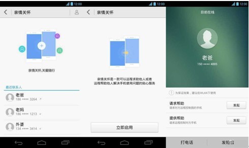 除了“灵犀一指”这个比较神奇的功能之外,荣耀6发布会就有提到的“亲情关怀”这一远程协作功能最近也“火火火火火“(不能念完的请自动点赞,控制不住接着唱的请点32个赞)”,楼主难道是慢半拍?华为荣耀走的励志路线现在往温情路线靠拢了?不管了,反正如果老爸让我帮忙装个脸萌神马的,也不会惊讶了,分分钟把爸妈往潮人上带的节奏。