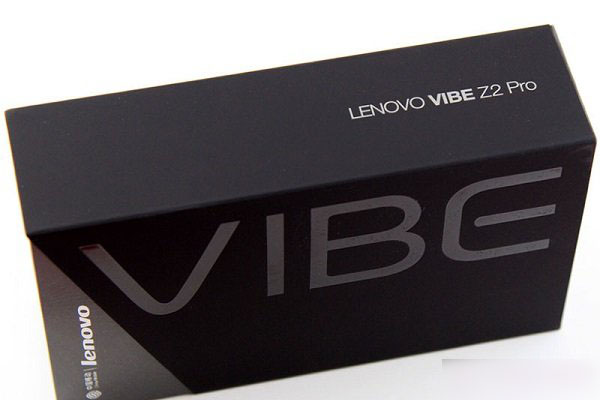 包装上,联想VIBE Z2 Pro采用了全黑色的深邃设计,包装风格延续了VIBE系列手机风格,整个包装上印有了VIBE四个大的英文字LGOO,包装盒上印有的文字均为英文,国际范十足。