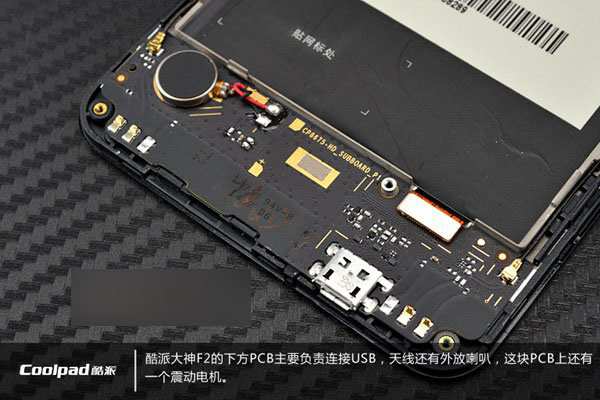 酷派大神F2拆机内部主板结构特写