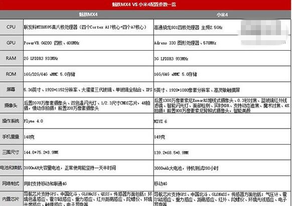 • 屏幕尺寸:小米4的屏幕尺寸为5英寸;魅族MX屏幕尺寸为5.36英寸。