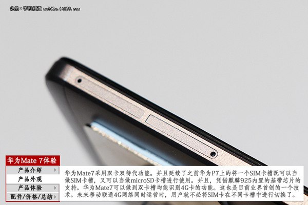 网络方面,华为Mate 7采用双SIM卡设计,支持双卡双待,并支持双4G网络。