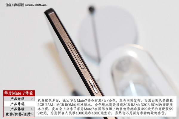 机身配色方面,华为Mate 7拥有黑、白、金三种机身颜色,并且同时发布。