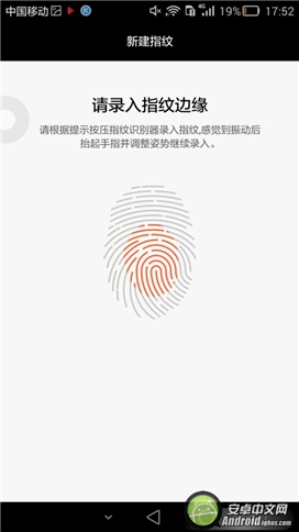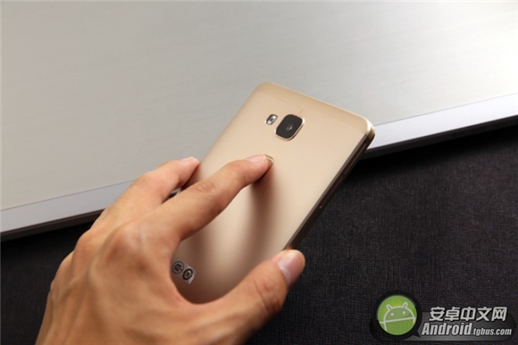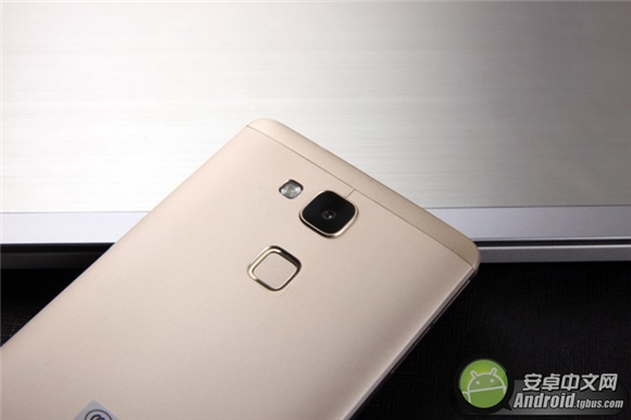 咦?摄像头下面那个东东是什么呀?哦,原来是指纹感应器!大家千万不要小看这个感应元件,也许凭借自己的固有思想可能认为这个指纹识别除了iPhone5S的都是鸡肋,如果这样想的话那就大错特错了。因为华为Mate7采用了与iPhone5S相同的按压式传感器技术,无需刮擦,360度指纹识别。