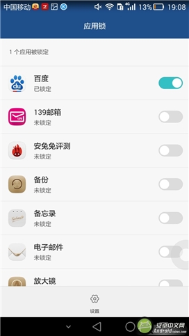▲应用程序锁:为系统默认与第三方APP增加指纹解锁密码