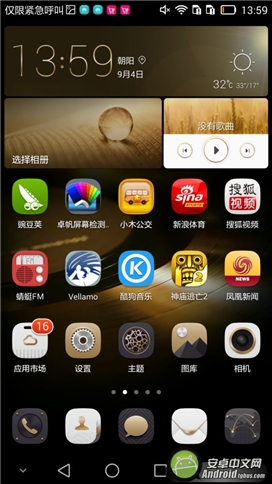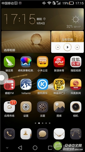 EMUI 3.0整体有了一个华丽的转型,因为基本没有什么动态效果,它整体依旧非常流畅。图标采用类似iOS的扁平化小清新风格,图标边角弧线更远,边线也更细。屏幕下方的导航栏也有很大的变化,三个可隐藏的虚拟按键分别变成了三角、圆圈和方块的形状。