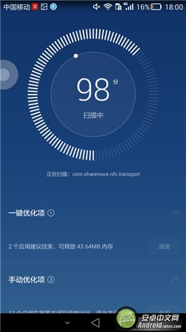 EMUI 3.0为用户制作了一款“手机管家”软件,进入程序后可以进行一键体检,在下方还有加速优化、骚扰拦截、省电管理、流量管理、权限管理和病毒查杀等八大功能。