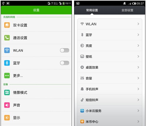 最后再来看看大神F2和红米Note 4G设置界面对比。
