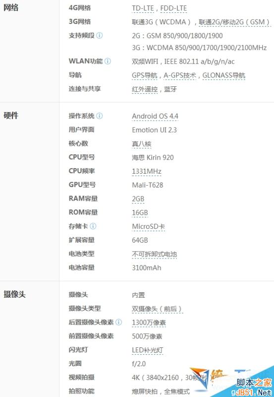 此外,该机内置3GB内存,有16GB、32GB两个存储版本,还提供了3100mAh电池(智能2.0省电技术,号称省电30%),500万像素前置+1300万像素索尼第四代BSI堆栈式后置摄像头。