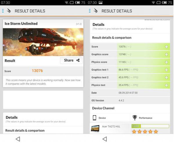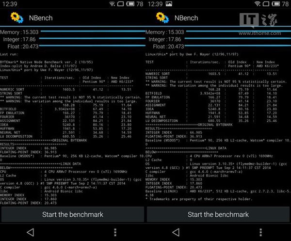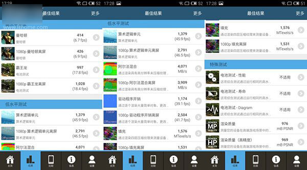 我们拿到魅族MX4工程样机后也进行了Nbench、GFXBench以及3DMark跑分测试,下面是我们的实测结果(在魅族MX4的设置中将电源模式切换为高性能,然后关闭所有后台应用并重启后进行测试)。
