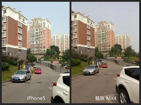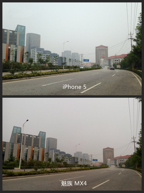 2、实际拍摄效果:(魅族MX4与苹果iPhone5在同地点同时间进行拍照,天气情况为阴天)