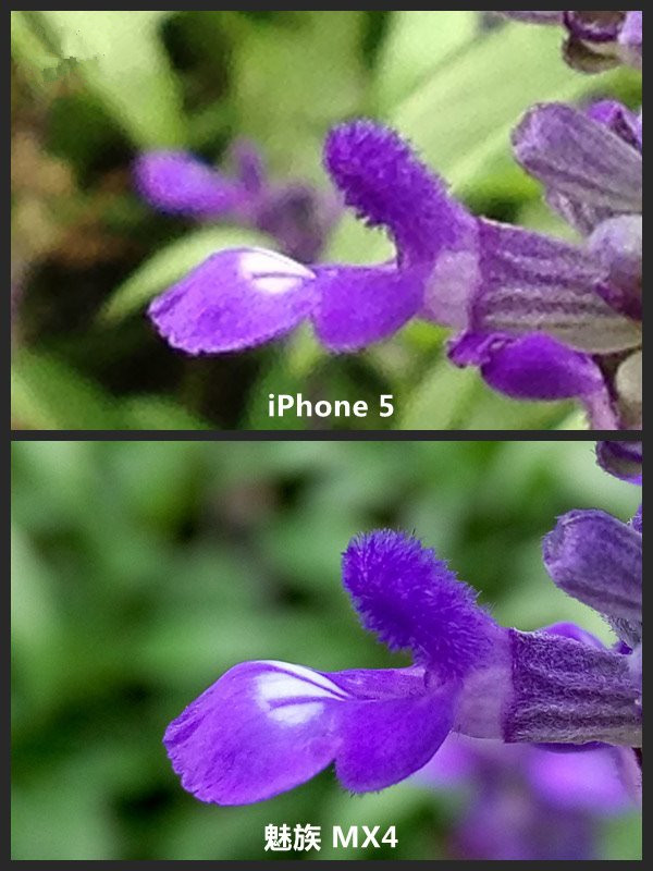 ▲相比于苹果iPhone5 F/2.4的光圈值,魅族MX4的F/2.2光圈配合微距模式对背景的虚化能力明显更强。