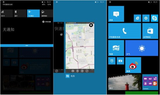 首先是多任务。Windows Phone 8.1的多任务管理有了巨大的提升,在原来长按后退键的基础上增加了点击应用右上角关闭的功能,终于填平了之前需要不断按后退键才能安心的脑残逻辑,强迫症人士们终于可以放心。