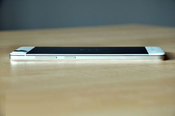 Vivo X5的外观设计虽然平淡,但当把它真正拿到手上把玩后,立刻就能感受到它考究的材质和精致的做工。正面玻璃面板的触感好,听筒上的金属滤网让它显得更加高档。背面三段式机身上下两端处理成磨砂材质,中间的铝合金让整个手机提高了一个档次。中框的工艺则和iPhone5类似,但要纤薄的多,实体按键没有任何松动,按压力度和回馈也非常优秀。