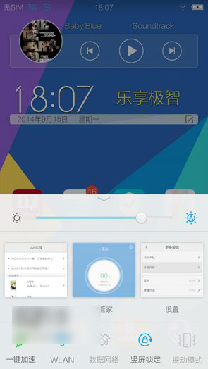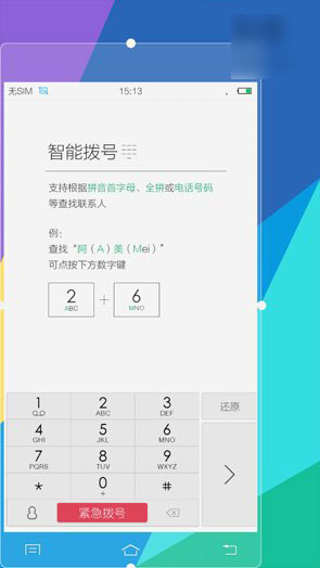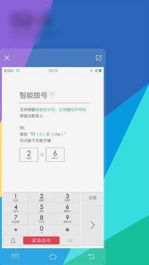 从屏幕上部向下滑动呼出通知中心,屏幕下部向上滑动呼出控制中心和多任务切换,同时这个系统专门为单手操作做了优化,在拨号或者输入界面,从屏幕外侧向内侧滑动即可将界面优化为单手操作模式,并且可以将界面整个缩小,按比例调整。