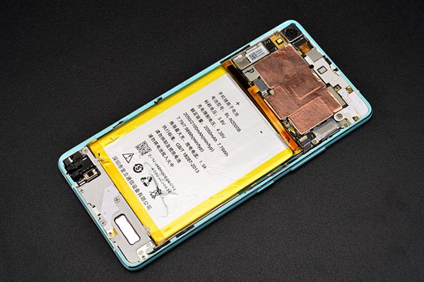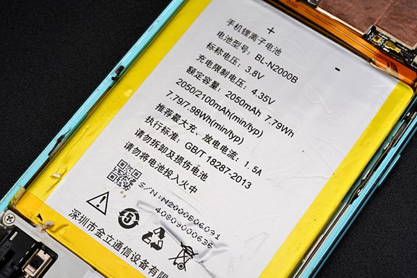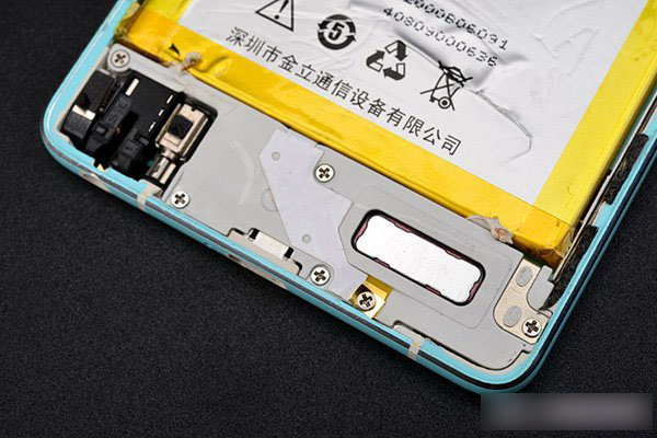 由于机身非常纤薄,金立Elife S5.1内部结构十分紧密,其中电池占据了大部分的面积,如下图所示。