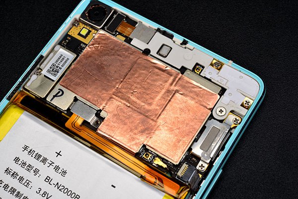 金立Elife S5.1机身内部上部的主板上覆盖有比石墨散热贴更好的铜薄,这样更有利于超薄机身,内部相对狭小的芯片散热,此前金色S5.5就存在发热较大的问题,相信金立S5.1会有所加强。