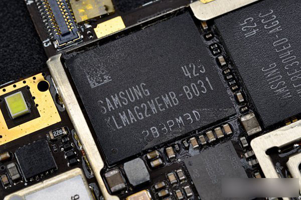图为金立Elife S5.1主板上集成的三星Flash芯片特写,这也就是金立Elife S5.1手机的ROM存储芯片,拥有16GB存储。