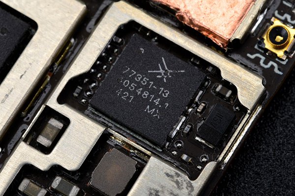图为金立Elife S5.1主板上的SKY77351基带电源放大芯片,主要用于处理接受的网络信号。