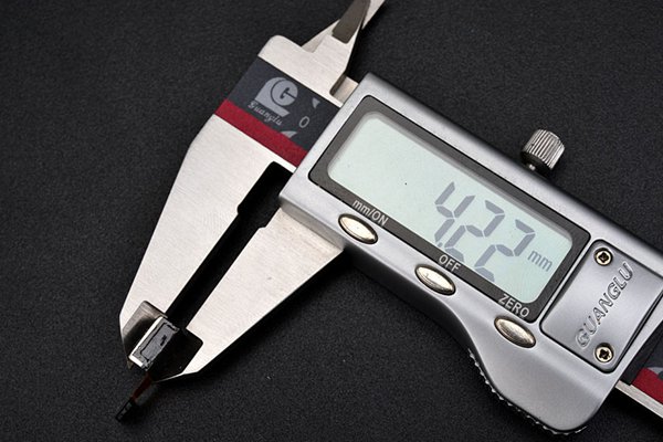 金立Elife S5.1采用的是精致的玻璃后盖,采用的是康宁大猩猩玻璃,拥有不错的强度和抗磨性,目测来看,金立Elife S5.1后盖非常纤薄,通过测试可知,其厚度仅0.4mm,如下图所示。