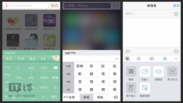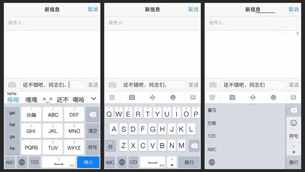 今日凌晨,苹果正式推送了iOS8正式版系统,之前大家十分期待的第三方输入法也随着正式版系统同步上架。自从iOS6开始,苹果对中国市场的重视程度就日益提高,继iOS7添加原生九宫格后,iOS8又开放了第三方输入法接口(当然很多越狱用户可能对此不屑一顾,都用很久了好吗)。下面我们一起来看看终于“名正言顺”的第三方输入法们实际表现如何,是否能让我们达到运指如飞的完美体验?对比下已经十分成熟的Android版本,它们又有什么不同之处呢。