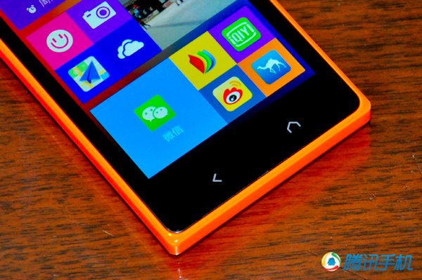 2、诺基亚X2屏幕下方新增加了一颗实体的Home按键,之前诺基亚X只有一颗返回触控键;