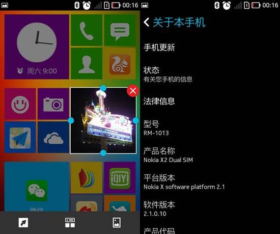 6、诺基亚X2采用的是基于Android4.1的诺基亚X Platform 1.0,诺基亚X2则是基于Android4.3的诺基亚X Platform 2.1系统。