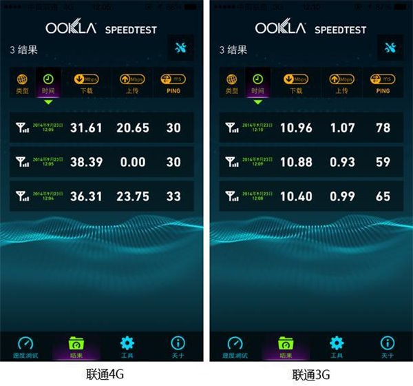 理论归理论,我们用两部手机实测了一下,发现在北京已经可以搜索并使用到联通4G了,但是测速表面目前还不是很稳定,下行速率基本在30Mbps以上,上行也能维持在20Mbps以上,但偶尔上行居然会没有速度。