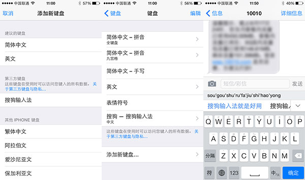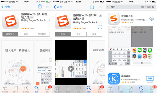 最激动人心的还是第三方输入法!操作方式也类似Android,先下载程序,再在设置中选择搜狗输入法,最后在输入时切换到搜狗输入法。