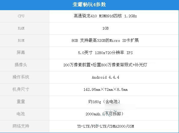 在评测之前,我们还是先详细了解一下荣耀畅玩4的参数配置