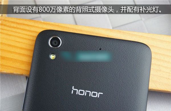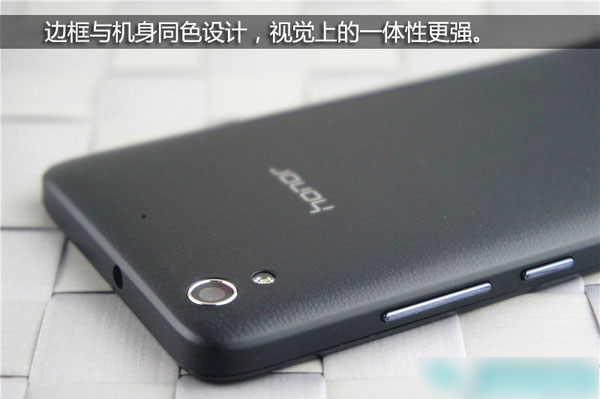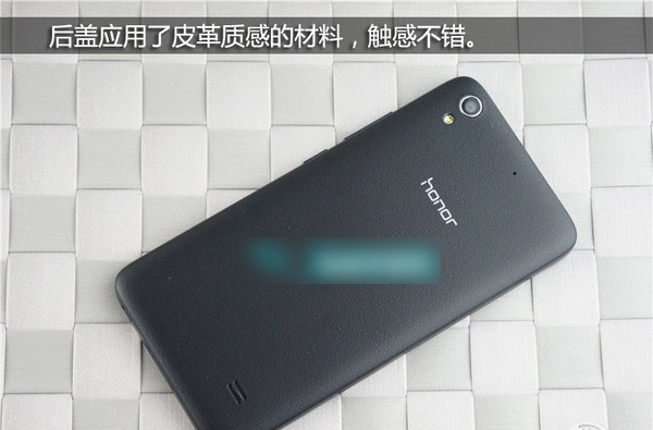 荣耀畅玩4的背面虽然是工程塑料材质,但应用了特殊工艺,使其质感与皮革表面相似,不论是视觉上还是触感上都提升了手机的当次,另外背面还有一定的弧度,符合人体工程学,握持打电话时的感觉更为舒服。