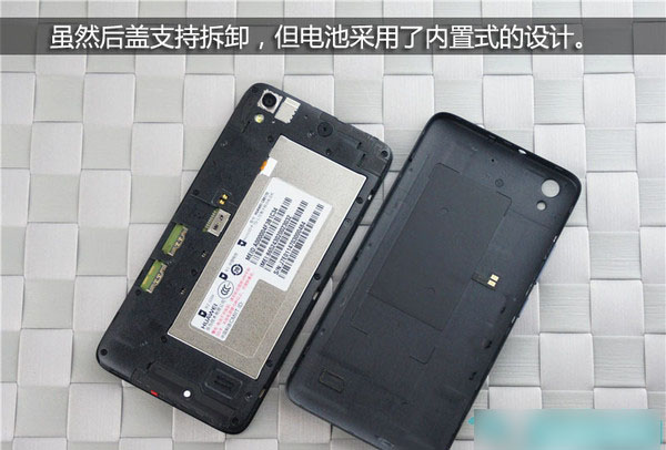 因为本次参与评测的荣耀畅玩4还处于工程机阶段,所以没有配备入网许可证。后盖可让用户自行拆卸,但从图中可以看到,电池是采用内置式设计的。