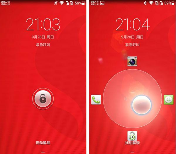 在锁屏界面当中可以快速进入相机与通信软件,比较方便。