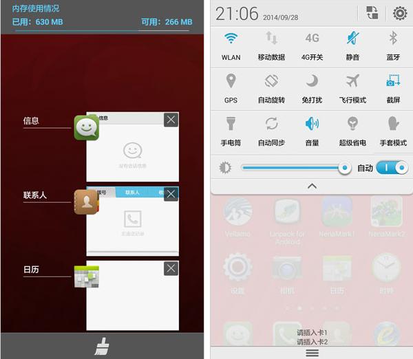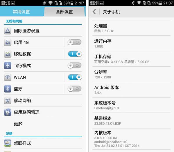 手机搭载了荣耀家族引以为傲的Emotion系统,版本为2.3,系统基于安卓4.4.4深度优化,其在人性化程度方面相对于原生系统有较大的提高,且在细节方面针对国内用户的使用习惯有所优化,画面也比较炫丽。