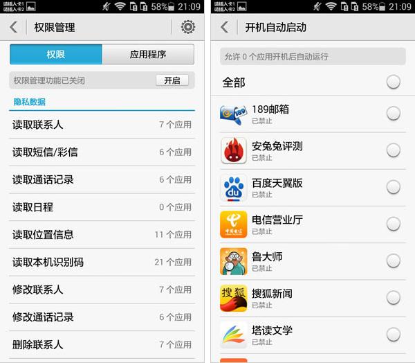 系统当中设有权限管理功能,用户可以更好地保障自己的隐私不被外泄,另外还有开机自启管理功能,一定程度上防止软件安装较多后手机变卡,对提升运行速度有一定的积极作用。
