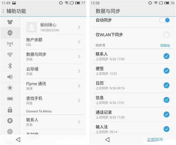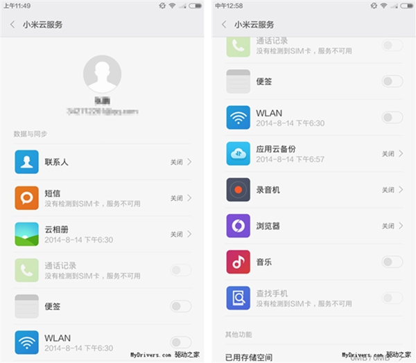 提到云同步,两者都有着比较完善的服务,比如联系人、短信、相册、便签、WLAN密码、查找手机等等。