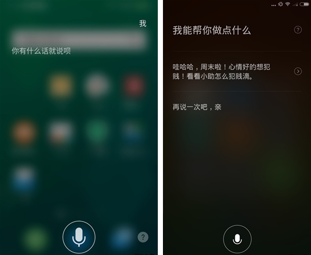 Flyme 4.0加入了语音助手,与小米先前就已提供的语音助手一样,均基于讯飞语音技术,界面类似Siri,可以满足查天气、讲笑话、拨打电话等日常娱乐需求。
