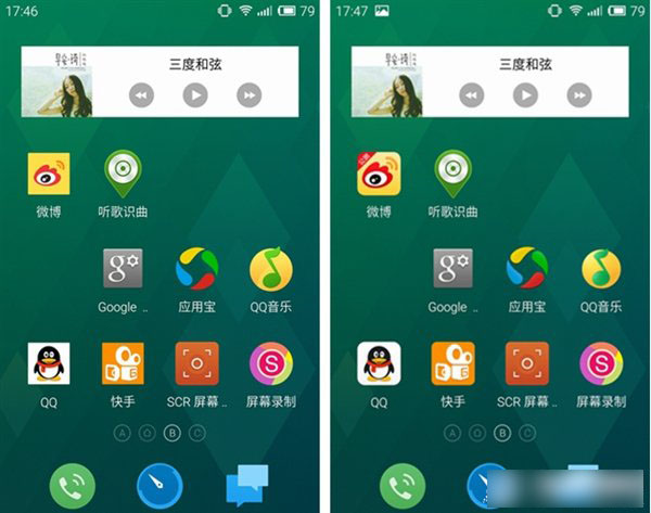 经过多次迭代,两款ROM都已经发育的相当成熟,再也不会出现通知栏和桌面不一致的状况,Dock栏也不再有高光来凸显立体性,整个桌面表现出良好的一体性。
