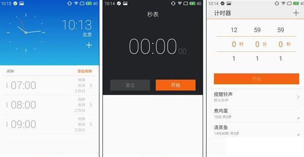 从两款时钟APP的界面对比来看,很明显,MIUI 6的风格更为统一,并且有着非常丰富的色彩变幻;而Flyme 4.0依旧坚持简单好用。