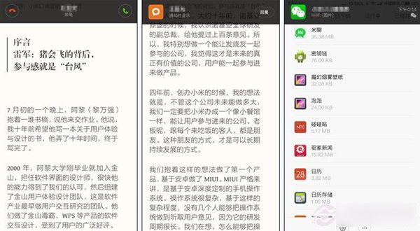 而MIUI系统的用户量已经超过7000万,优秀的交互和丰富的DIY特性让不少用户爱不释手,最新的MIUI 6采用多彩、简洁的Android L设计风格,官方称其设计哲学为“内容才是本质”。不过,随着功能的不断完善,其八面玲珑的特性也让不少人无所适从。