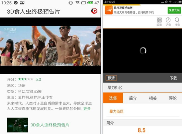 这里还是要对比一下交互方面,Flyme 4.0可以直接在详情页面播放,而MIUI 6则会有个跳转的过程。Flyme 4.0的视频集成度明显要更高一些,这种无缝的衔接使之看起来更像是一款APP。