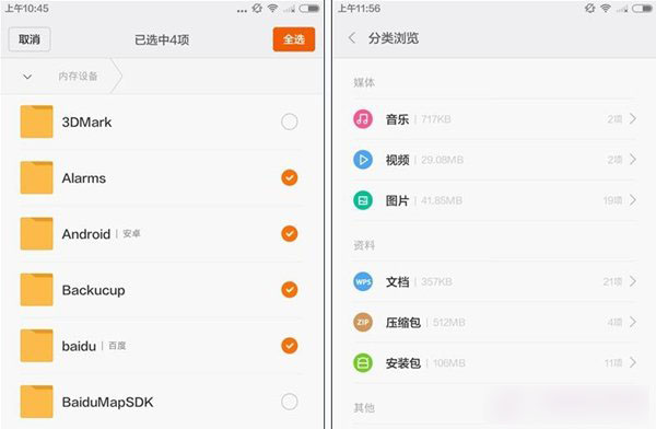 Flyme在不少地方也能体现统一性,比如文件管理器也采用二级列表设计,与其“设置”界面有着异曲同工之妙。此外,Flyme还有着一些人性化的小技巧,比如通过滑动即可进行多选操作,不过这些技巧并没有明示,学习成本是比较大的。