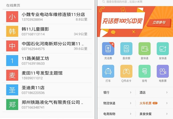 Flyme 4.0在线黄页 右为MIUI 6在线黄页