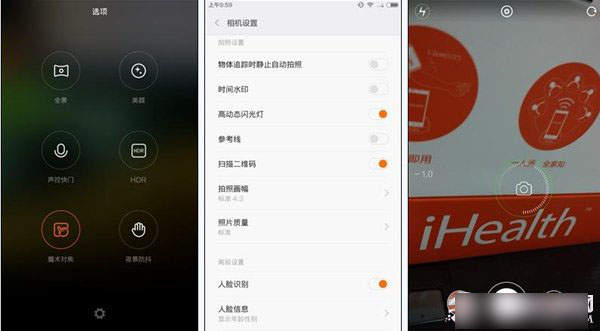 拍照功能方面,两者平分秋色,都提供了先拍照后对焦、扫描二维码、慢镜头、夜景等拍照模式;不过MIUI 6的可玩性更高一些,比如加入了根据人脸识别年龄、对焦的同时调节曝光度等等。