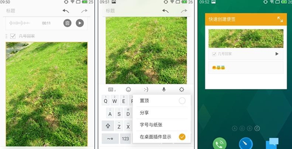 Flyme 4.0和MIUI 6都提供了精美的便签APP,可以编辑文字、图片,并进行云同步、分享到微博(分别显示来自Flyme便签、小米便签)。另外,Flyme还支持录音格式。