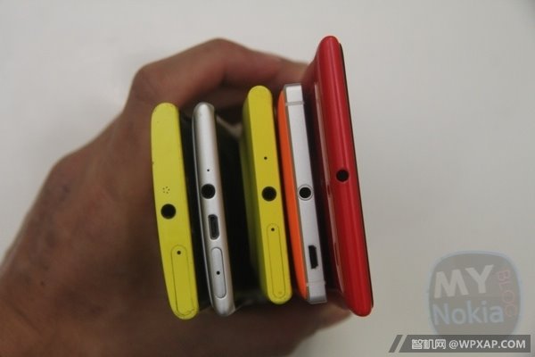 同时参与比较的还有Lumia1520,、920与925,如下图所示,Lumia830的厚度控制得非常薄,从侧面完全看不出小奥利奥的身影,而1020的大奥利奥的突起就非常明显了。在屏幕对比图片中,可以看出Lumia1020的Amoled屏幕的确要比Lumia830采用IPS技术的LCD屏的色彩更加艳丽。
