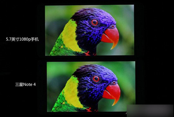 将2K屏三星Note4和5.7英寸1080P屏幕手机屏幕对比上看,我们使用肉眼基本看不到什么大区别,清晰度、细腻度几乎是相同的,只是在色彩和亮度方面细节差异。如果要了解两者屏幕中的较大区别,我们只能使用放大器放大屏幕,才可以看出屏幕颗粒大小之间的区别。