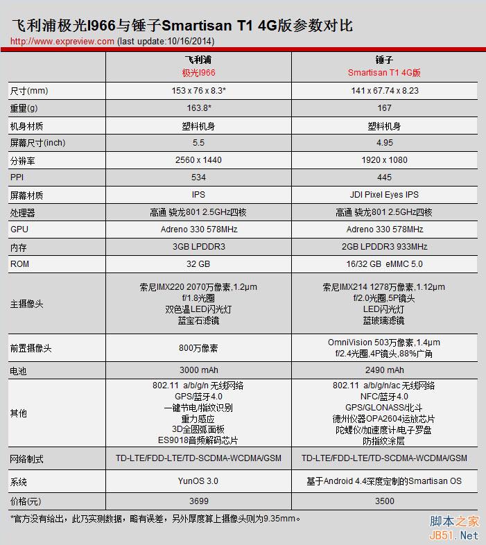 我们手上已经有锤子手机了,而I966真机还未到手,很多东西都不好说,那么我们现在先对比一下配置吧: